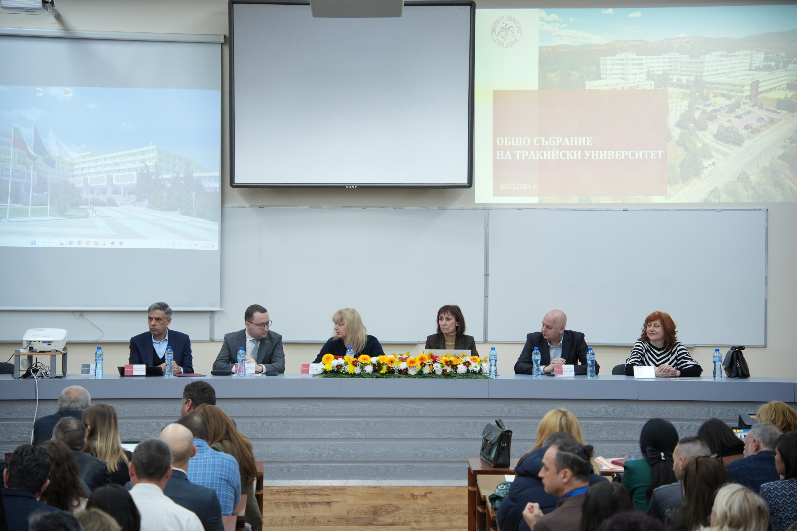 Ректорът на Тракийски университет – Стара Загора проф. д-р Мирослав Карабалиев представи пред Общото събрание годишния отчетен доклад за дейността на университета за периода февруари 2025 – февруари 2026 г, който очерта основните резултати, стратегически решения и приоритети в развитието на висшето училище. Той подчерта устойчивия институционален и академичен ръст на университета. През учебната 2025/2026 г. в Тракийски университет се обучават 8 560 студенти – с 12% повече спрямо предходната година, като броят на чуждестранните студенти достига 972. Приемът по държавна поръчка е изпълнен на близо 100%, а интересът към англоезичните образователни програми по „Медицина“ и „Ветеринарна медицина“ продължава да нараства.