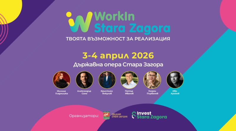 Четвъртото издание на кариерния форум WorkIn Stara Zagora 2026 ще се проведе в рамките на два дни – на 3 и 4 април 2026 г., в Държавна опера – Стара Загора. Официалното откриване ще бъде на 3 април (петък) от 12.00 часа.