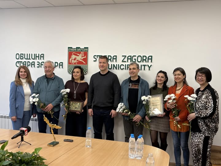 Кметът Живко Тодоров и Милена Желева връчиха Почетна грамота и художествена пластика на Държавния куклен театър Стара Загора по повод присъдената национална награда „ИКАР 2026“ на Съюза на артистите в България в категория „Куклен спектакъл“ за постановката „Голямата шапка“.