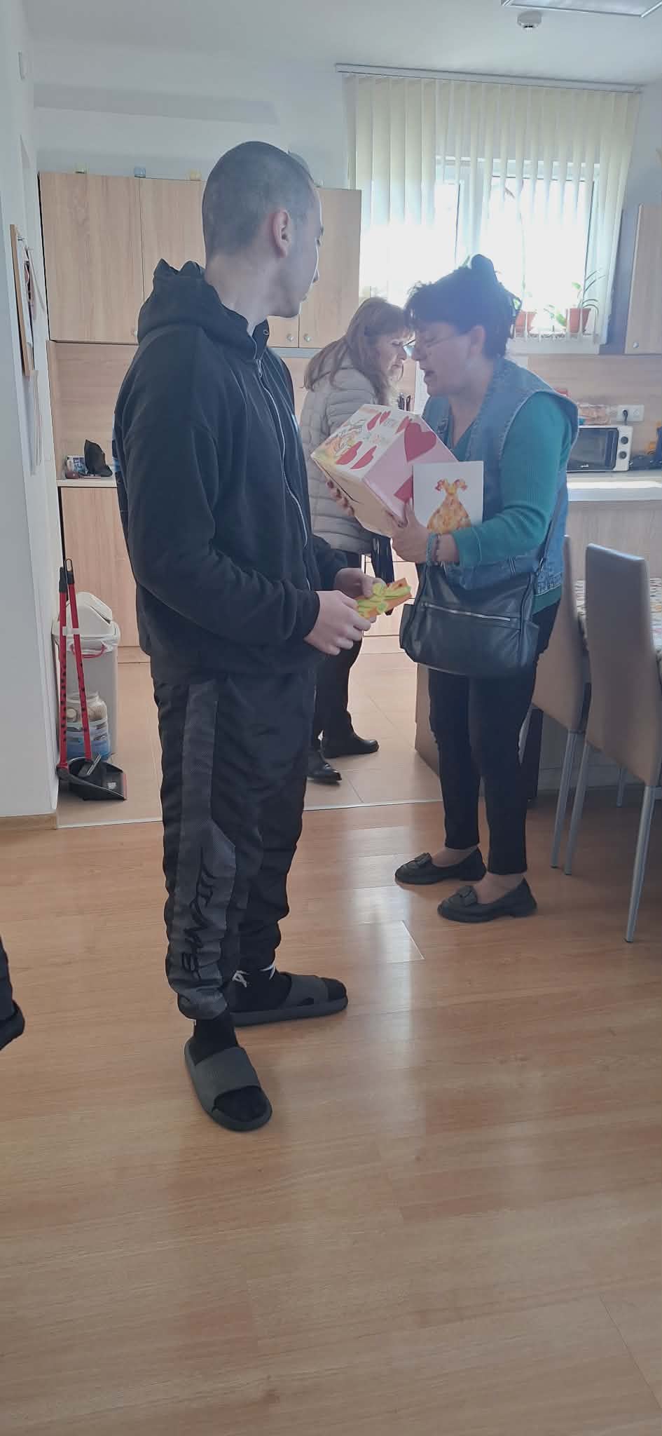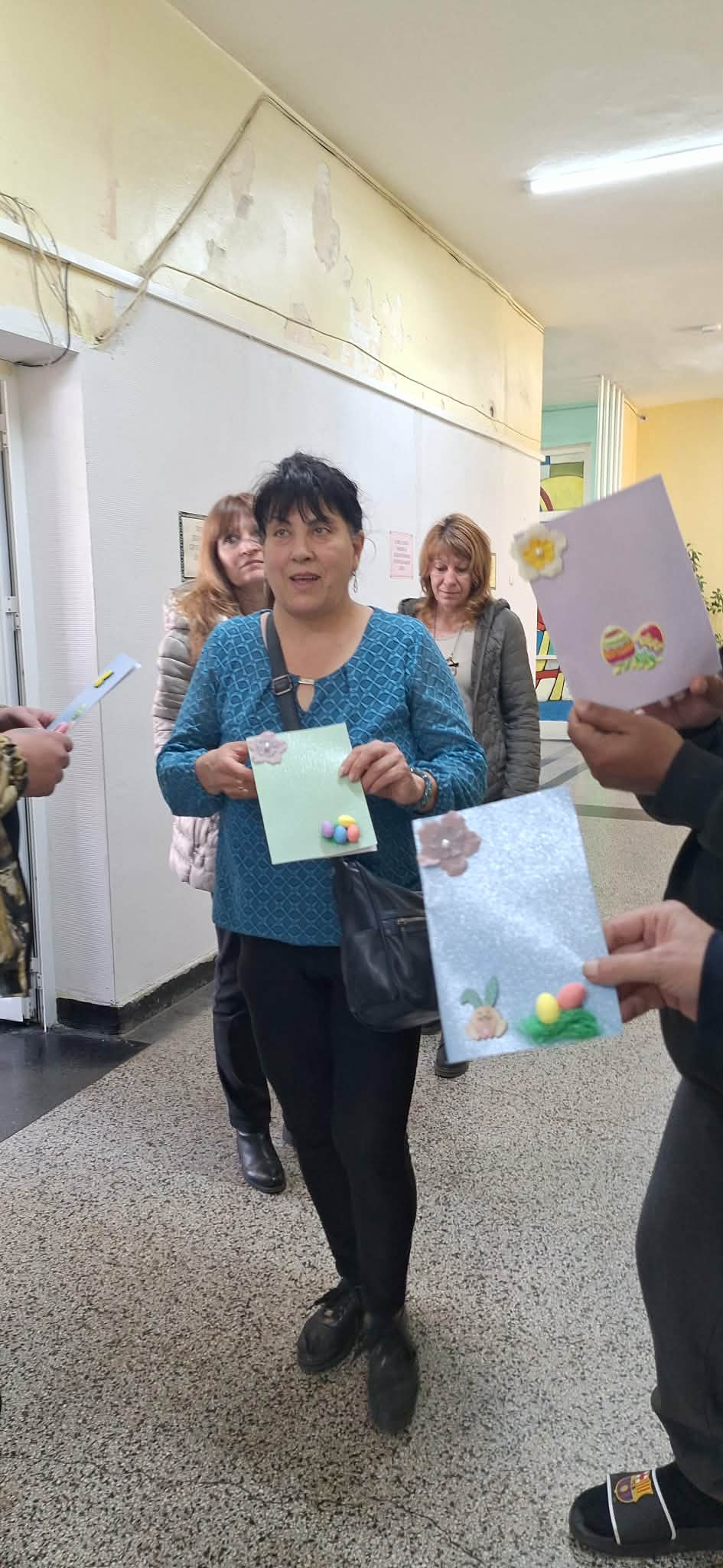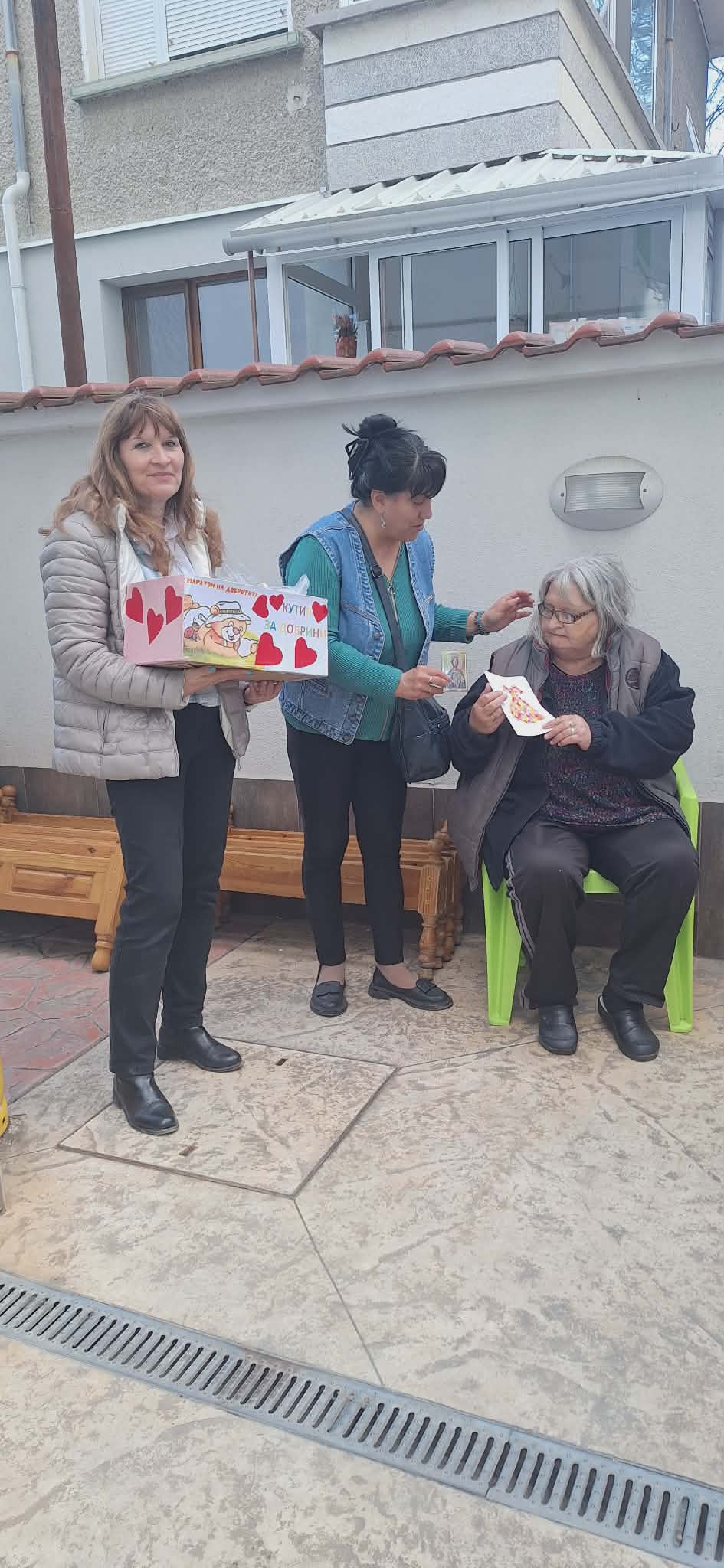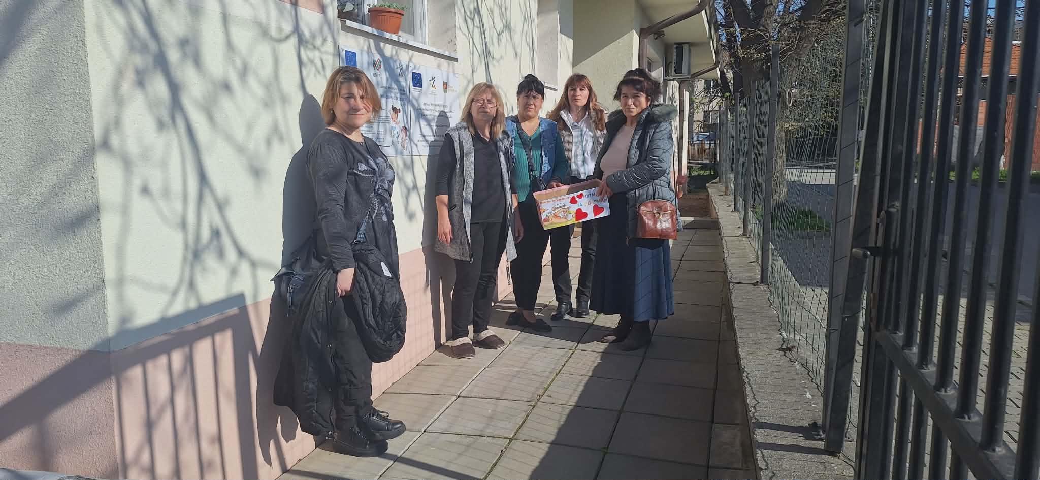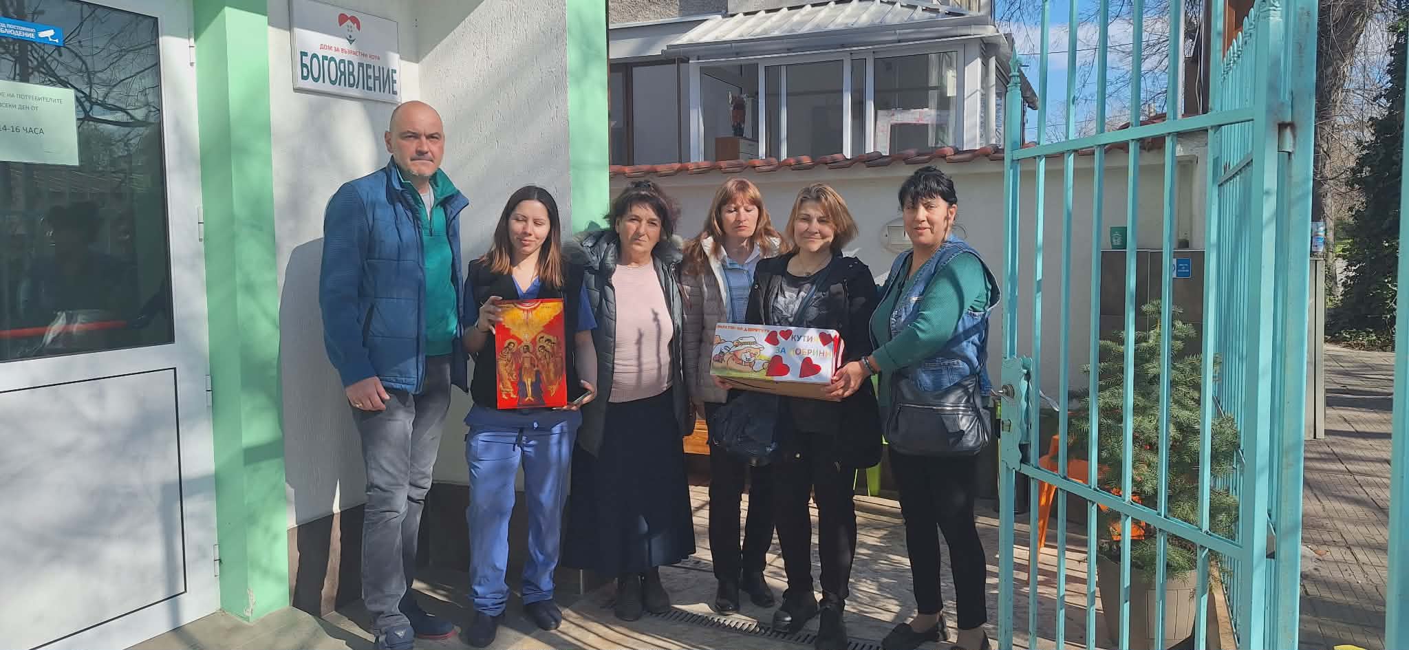 След това посетиха Преходното жилище от семеен тип в кв. „Зора“, където поздравиха персонала и потребителите с предстоящия Великден и им подариха ръчно изработени картички. Посещението продължи в Дом за възрастни хора „Богоявление“, където също бяха поднесени красиви картички, изработени с много любов от децата и екипа на градината. Управителят на дома получи икона и поздравителна картичка.