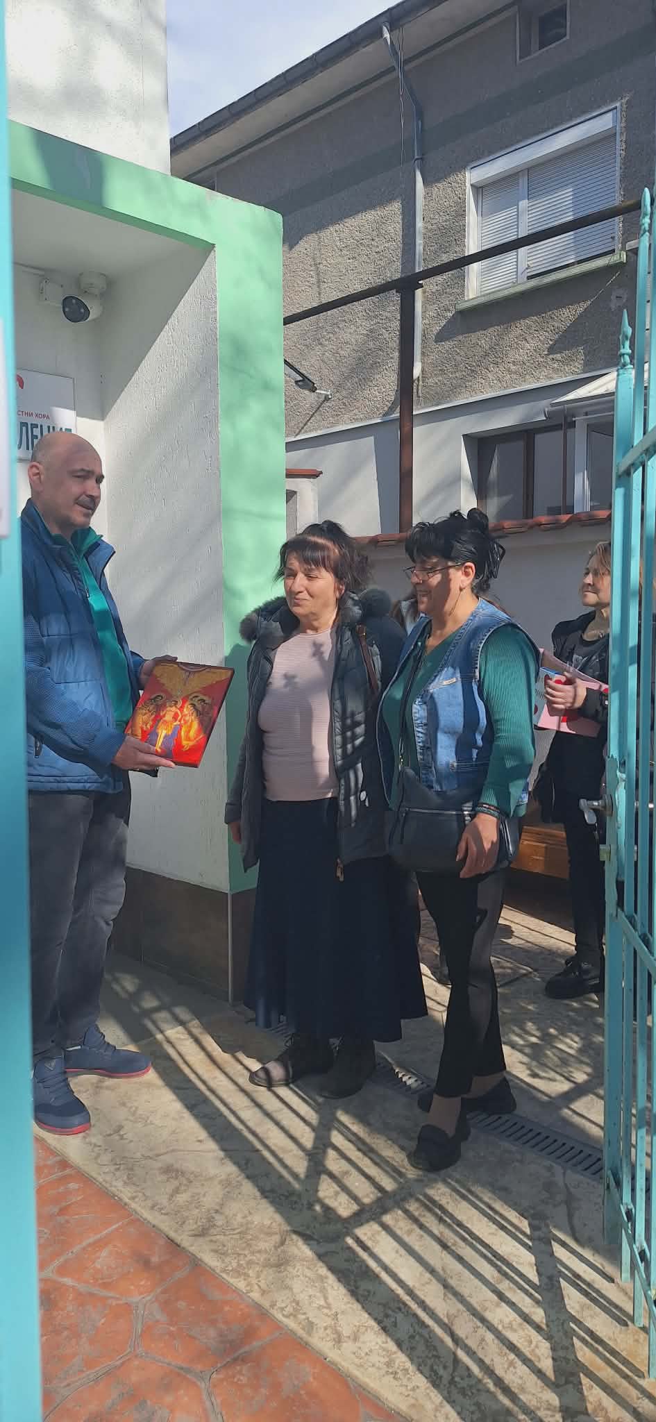 На 07.04. г-жа Донка Стоилова – директор на детската градина, заедно с учителите г-жа Радостина Жекова и г-жа Милена Сандева, Кера Стоянова- домакин и г-жа Ямакова – дипломиран художник и доктор по теология (християнско изкуство), посетиха редица институции с мисията да споделят топлина и внимание.