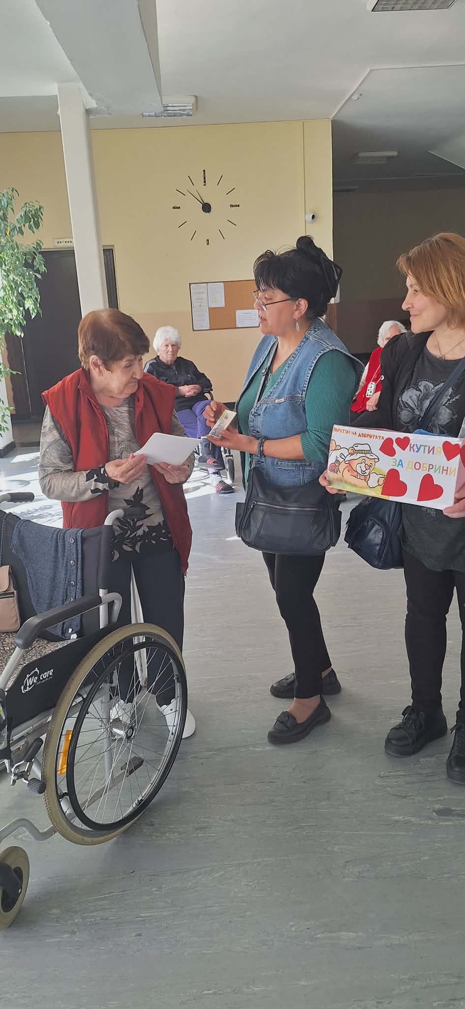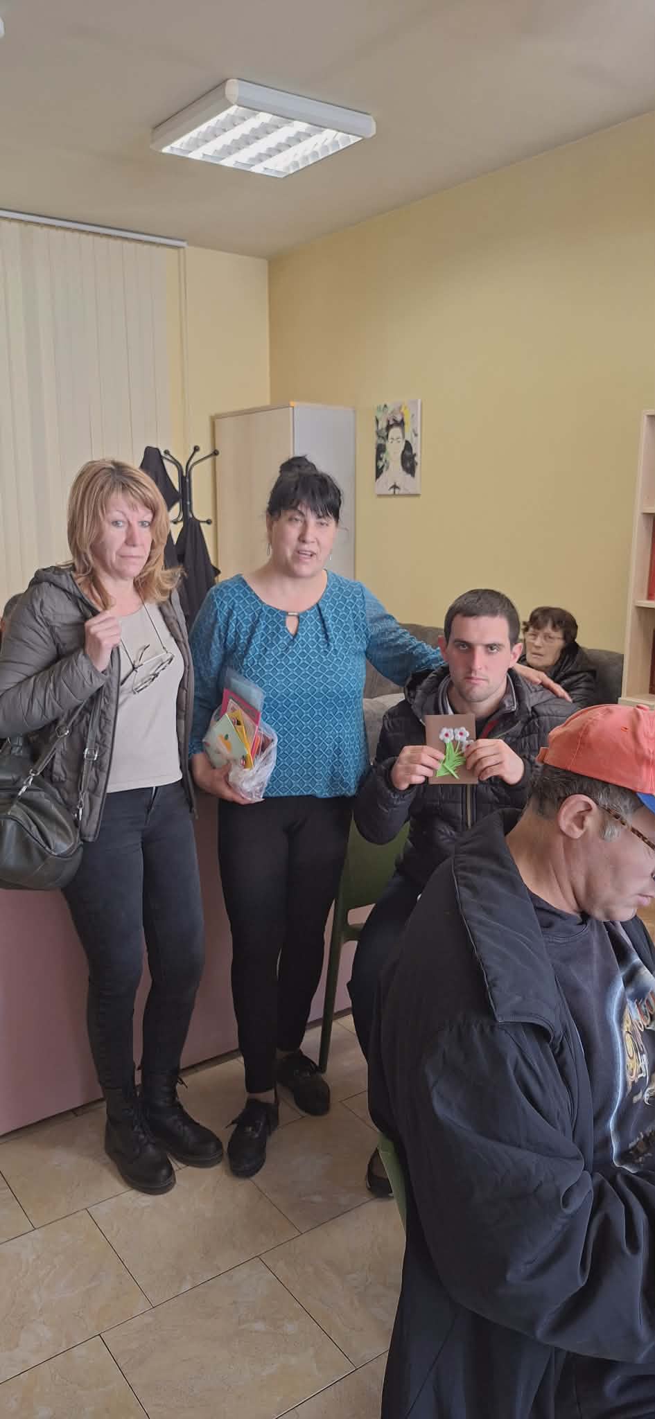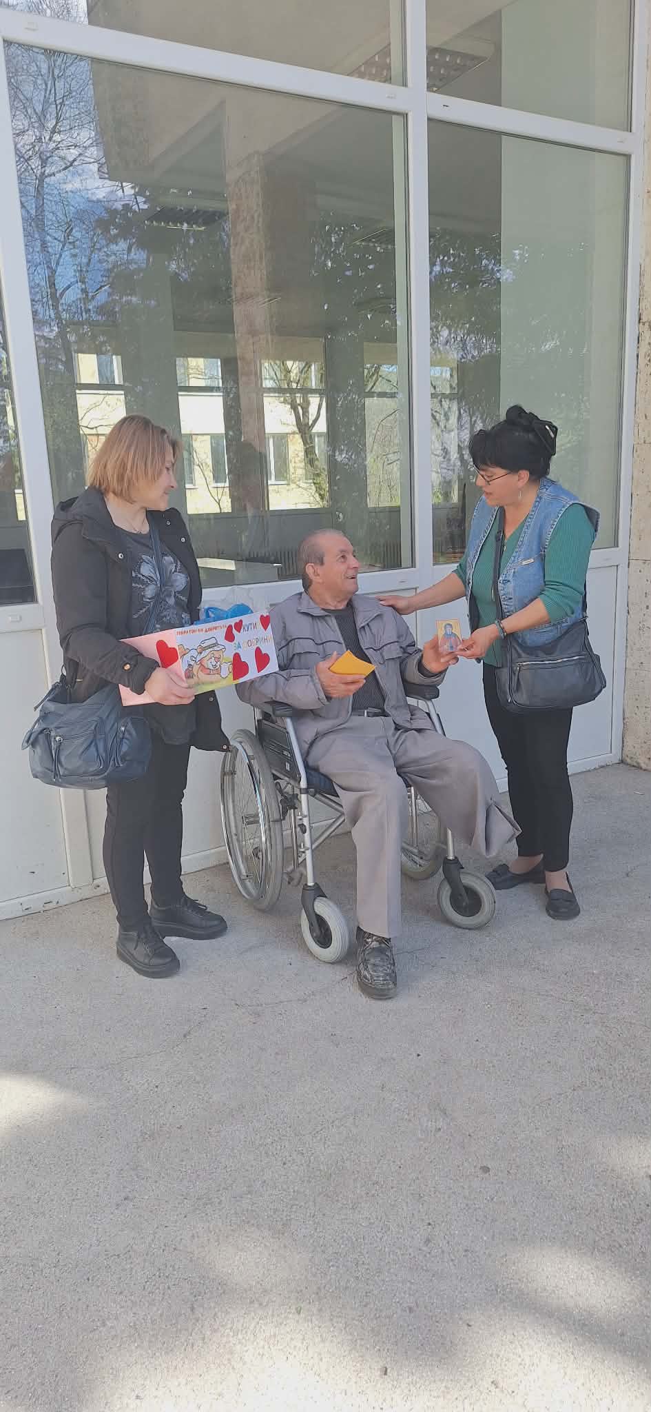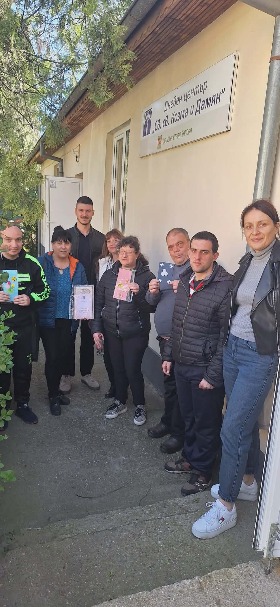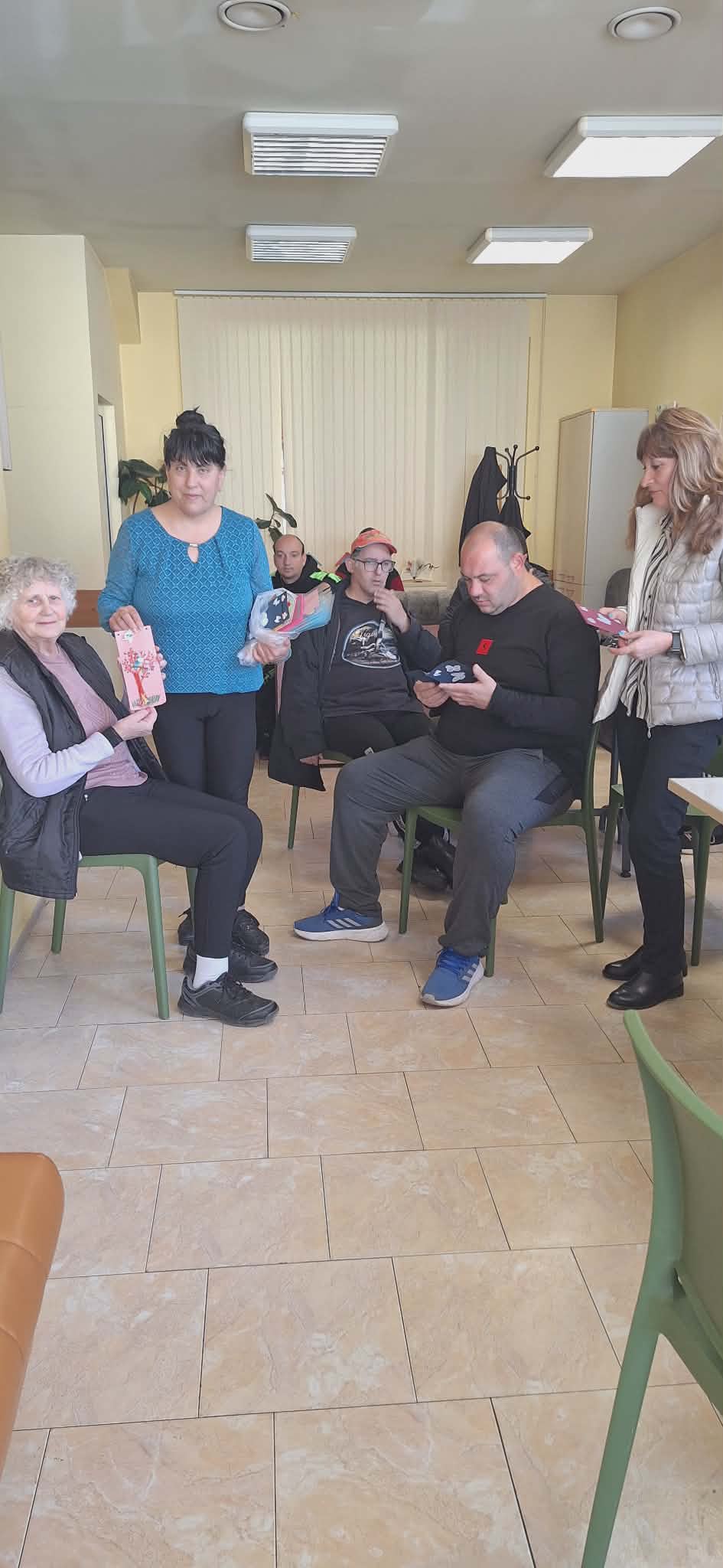 Инициативата продължи с посещение в Дом за пълнолетни лица с физически увреждания – гр. Стара Загора, където също бяха раздадени картички на потребителите и персонала.