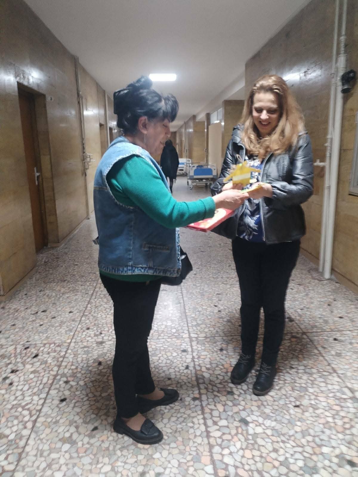 На 08.04. г-жа Стоилова, заедно с г-жа Радостина Жекова и Кера Стоянова, продължиха благотворителната мисия. Те посетиха Детското отделение на УМБАЛ „Проф. д-р Стоян Киркович“ АД – гр. Стара Загора, където подариха картина и картички на проф. д-р Петранка Чакърова, дм – началник на Клиниката по детски болести, както и на старшата медицинска сестра и малките пациенти.
