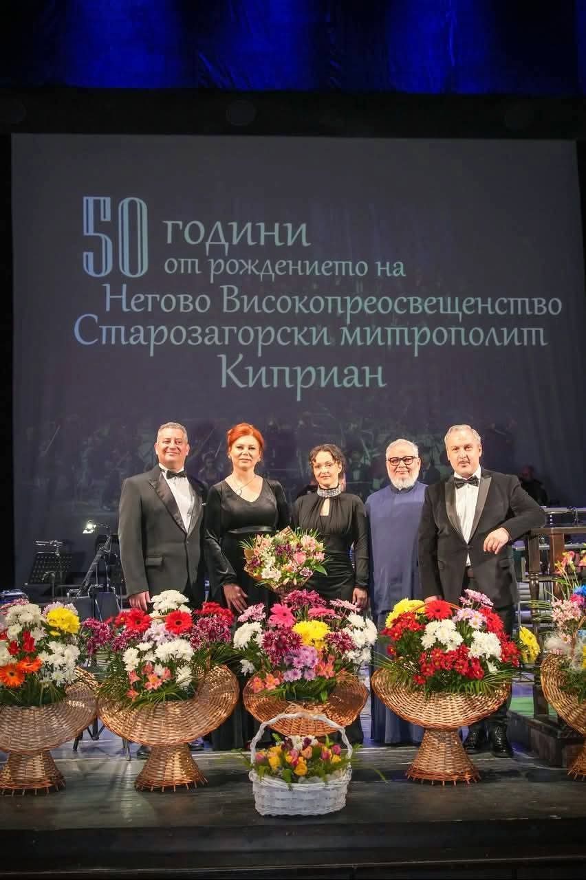 Дълго време продължиха аплодисментите и възторжените възгласи. Участниците във Великденския концерт получиха 25 кошници цветя, които предварително бяха подредени от двете страни на сцената и създаваха допълнителна празничност и уют. Цветята в знак на благодарност и признателност бяха от кметове на общини в Старозагорска епархия, начело с кмета на Стара Загора Живко Тодоров, от църковни настоятелства, културни институти, от настоятелството на Старозагорската опера.