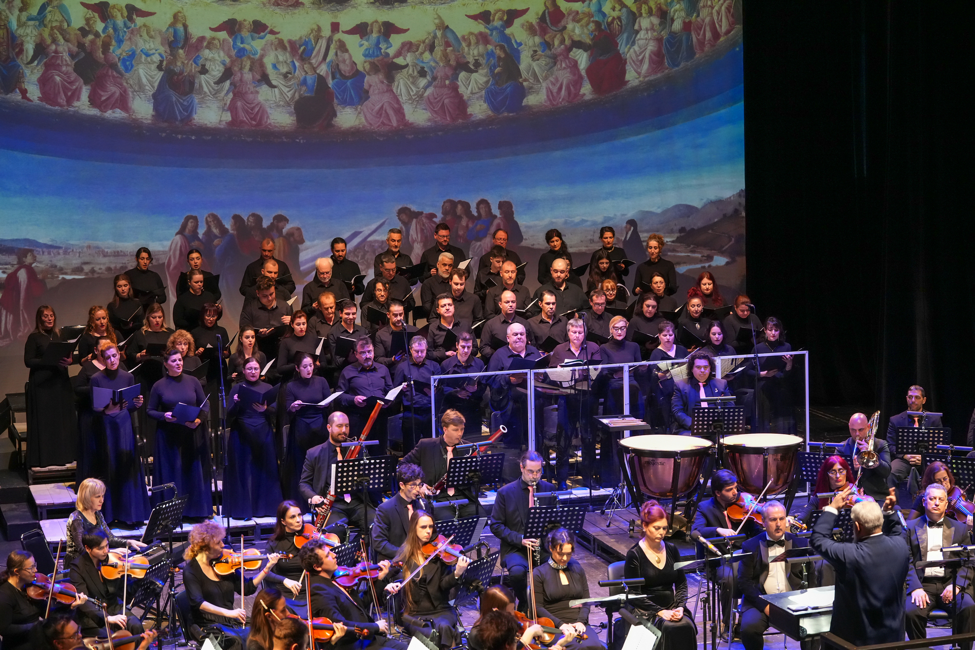 По време на концерта върху дъното на сцената се прожектираха за Коронационната меса- катедралата в Залцбург, където тя е прозвучала да първи път, а за Реквием – библейският сюжет „Всички ангели“ от Ботичели, които допълваха цялостната атмосфера.