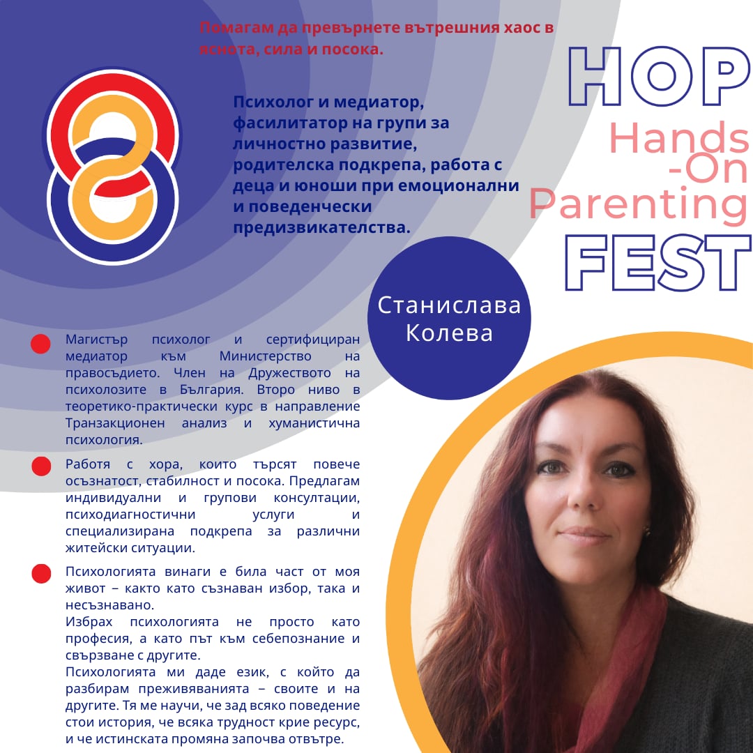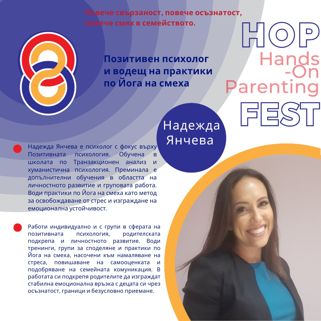 Независимо дали сте родител на малко дете, на подрастващ тийнейджър или просто се интересувате от детското развитие и комуникацията в семейството – ще Ви приветстваме за добре дошли в HOP Fest., място, където родителството се случва в действие.