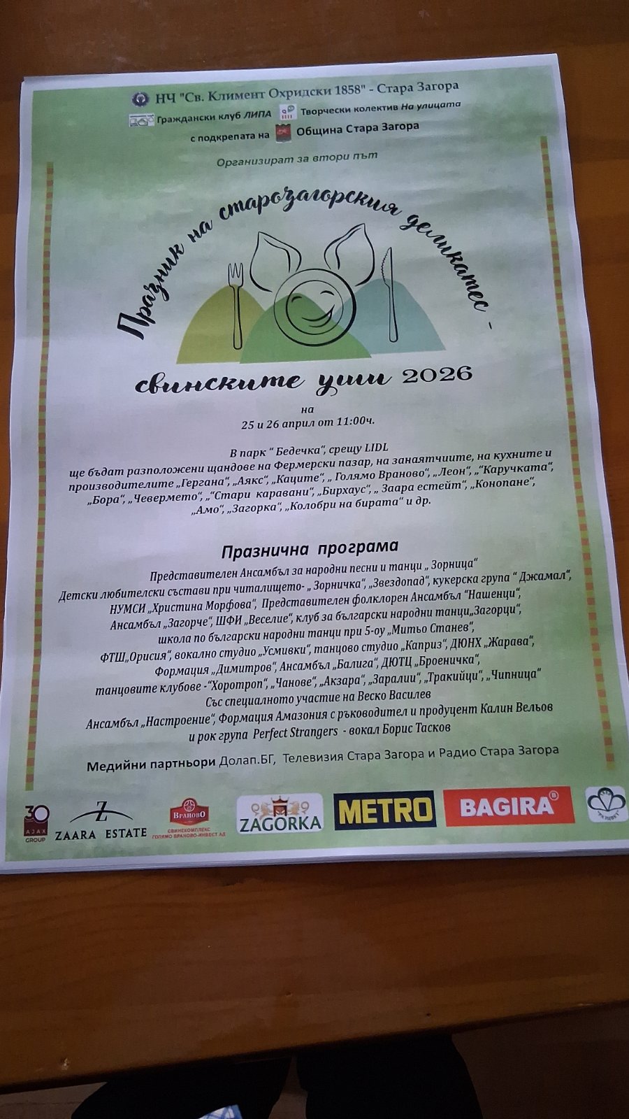 На 25 и 26 април 2026г. (събота и неделя) в парк „Бедечка“, срещу Лидъл, където става ежегодния Бирфест, ще се състои второто издание на „Празник на старозагорския деликатес – свински уши“ 2026г.
