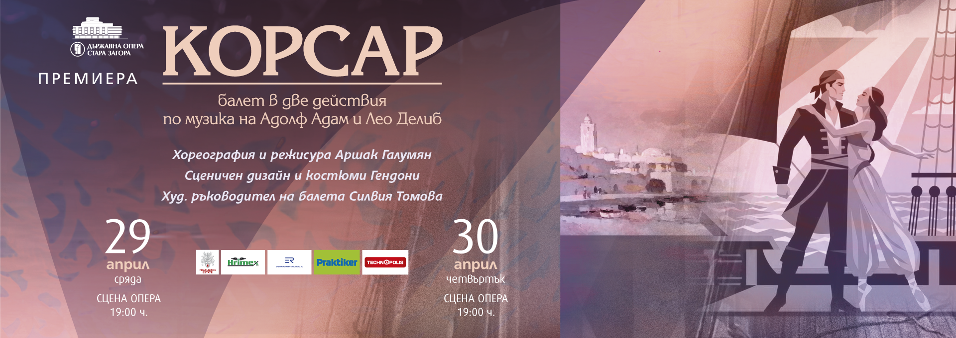 Едно от най-привлекателните заглавия в класическия репертоар – балетът „Корсар“ – за първи път ще оживее на сцената на Старозагорската опера в нейната вековна история. Премиерните спектакли, посветени на Международния ден на танца, ще се състоят на 29 и 30 април 2026г. от 19.00 часа.