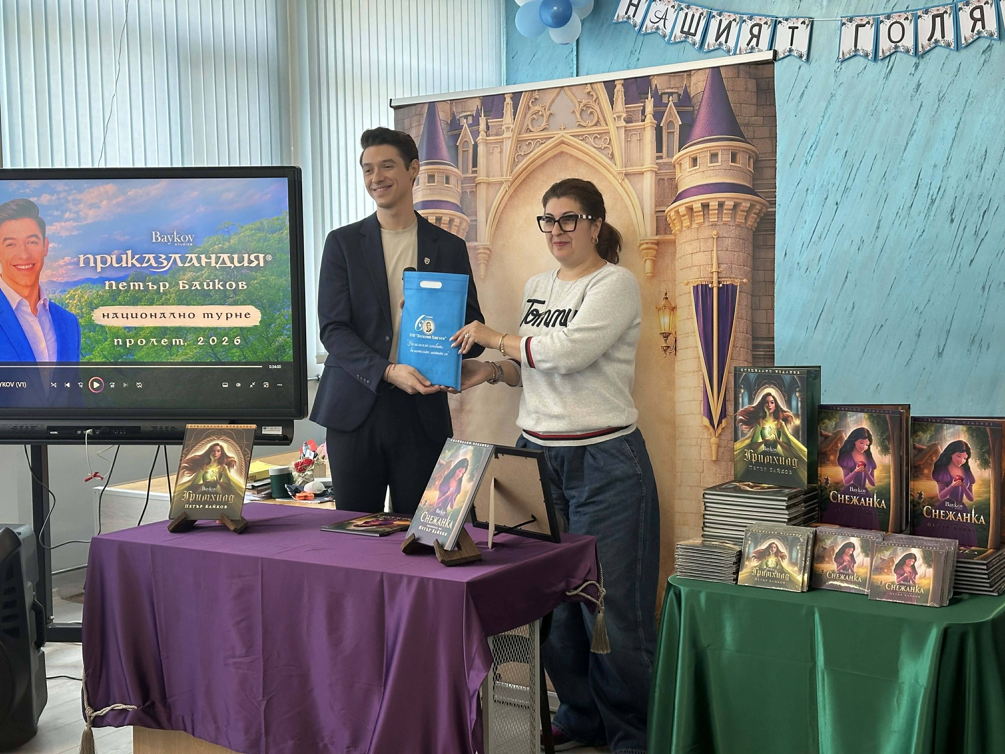 Поводът за посещението беше неговото популярно турне „Приказландия“, което обикаля училища в цялата страна и насърчава децата да обичат книгите и силата на въображението.