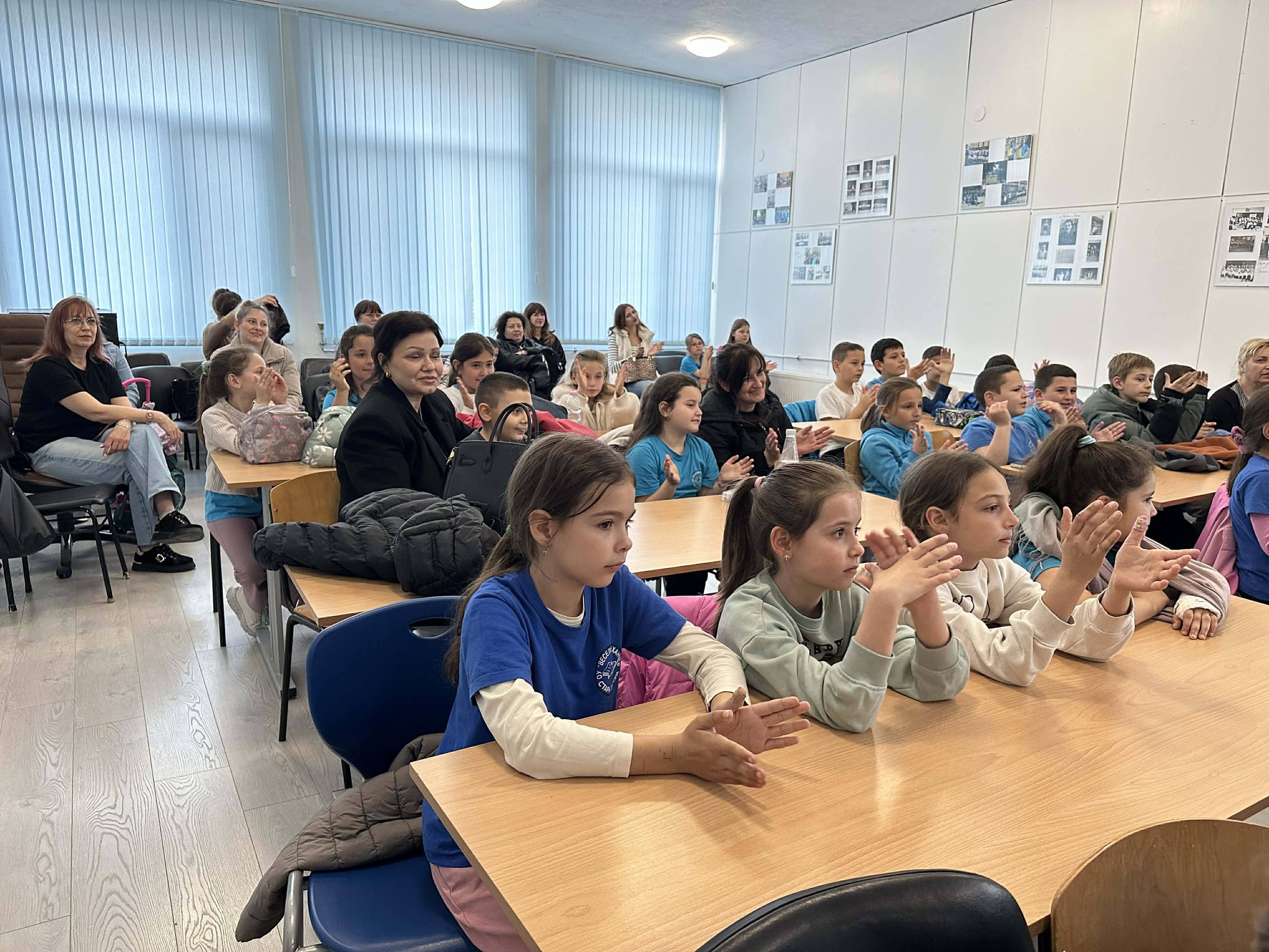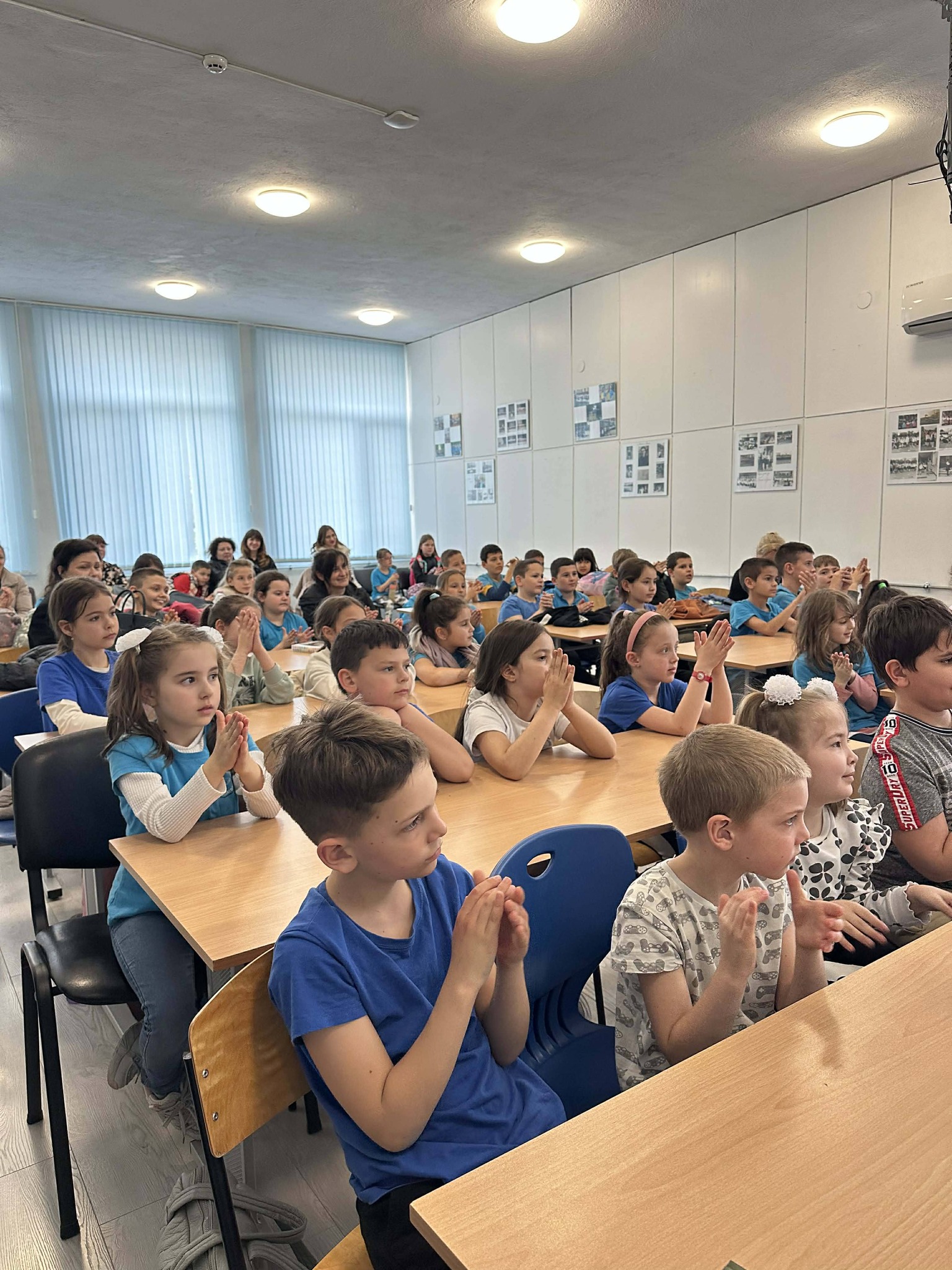 Още с първите думи на госта залата оживя, а учениците бяха впечатлени от способността му да пресъздава различни гласове на познати герои.