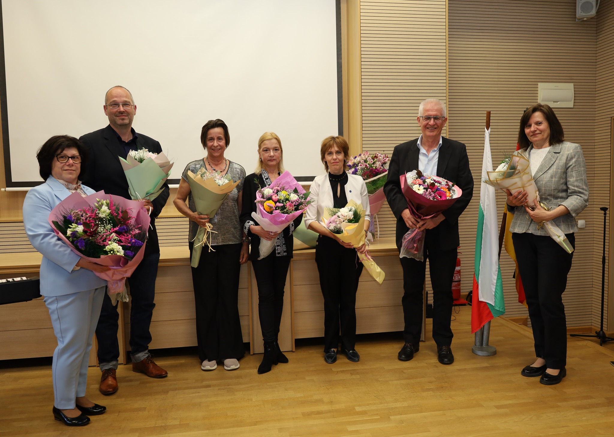 Учениците бяха поздравени от г-жа Теодора Николова, директор на гимназията, както и от г-жа Сибиле Шабанска, координатор и експерт към Централната служба за учебно дело в чужбина (ZfA). Преподавателите, ръководещи подготовката на учениците по програмата – г-н Здравко Личев, г-жа Силвия Чанкова, г-жа Златина Коева и г-н Рони Йоренд, пожелаха на абитуриентите да запазят стремежа си към знания и да продължат да се развиват все така успешно. Учениците изказаха благодарност и на учителите си от 8. клас, положили основата на знанията им по немски език, без която успехът им не би бил възможен.