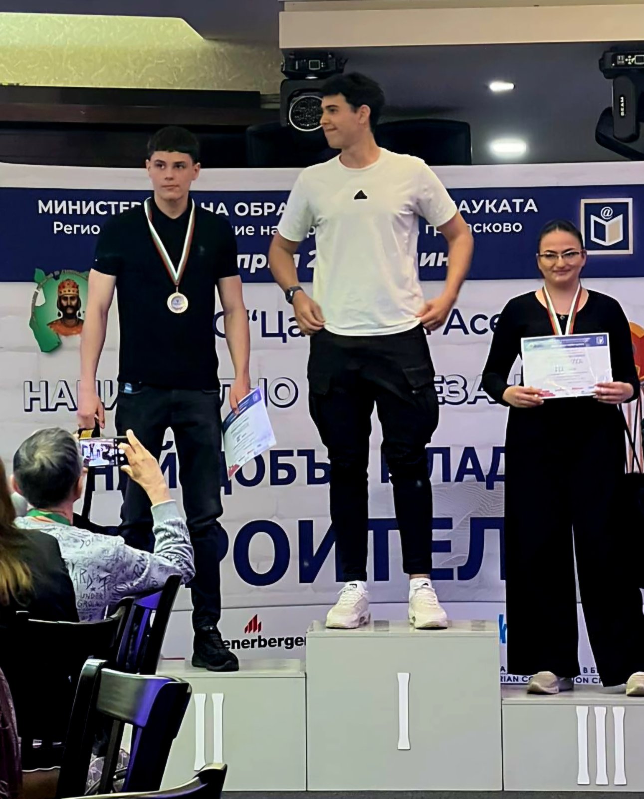– учениците от 12. ас2 клас – Денис Тенев, Михаил Колев и Станислав Узунов, обединени в екип SMD VISION, взеха участие в юбилейното 10-то издание на състезанието „Аз мога да строя – DELECTO“, организирано от Камарата на строителите в България. На 21.04.2026 г. в официалната зала на КСБ в гр. София се проведе тематичният конкурс в направление „Модерна къща“. Нашият отбор представи проект за съвременна еднофамилна жилищна сграда, разработен за реален имот в кв. Атюрен, гр. Стара Загора.